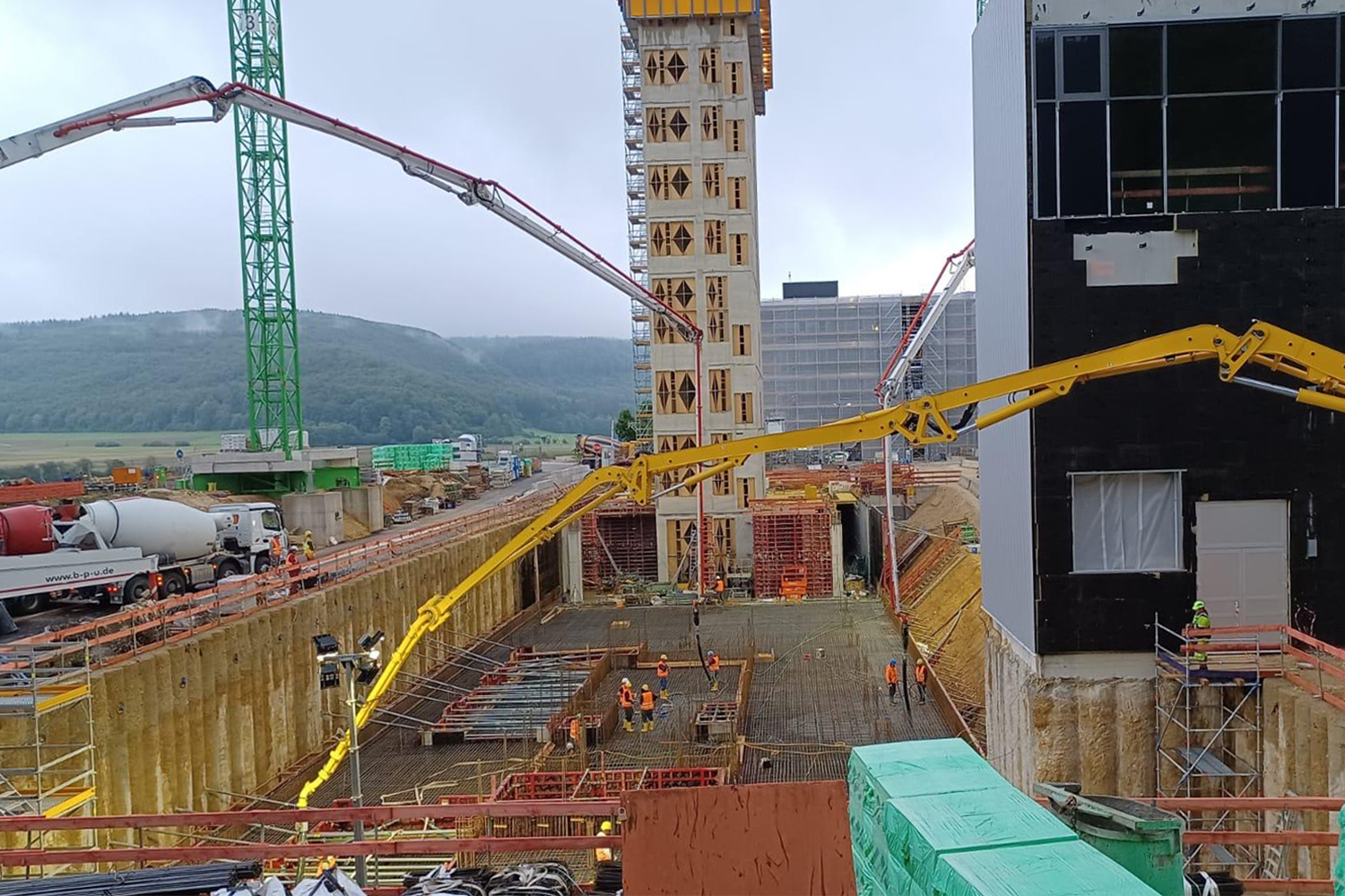 Ob Hochhaus, Tunnel oder Brücke: Wir meistern jede Baustellensituation mit der passenden Betonpumpe. Als Mitglied eines starken Firmenverbunds können wir Ihnen unsere Dienstleistungen nahezu bundesweit anbieten. Natürlich immer mit der bekannten Termintreue: Wir fördern den Beton auf der Baustelle zur richtigen Zeit an den richtigen Ort – mit Sicherheit.